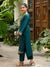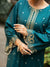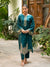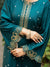This stunning outfit features a deep teal base with gold and multicolor embroidery, giving off a luxurious, jewel-toned vibe. Here are piece full of richness