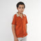 This half-sleeve Cuban collar shirt features a rich rust front panel that melts into a muted beige back—delivering a sophisticated two-tone appeal. The open collar frames the face beautifully, creating a relaxed yet refined silhouette that feels both upscale and easygoing.