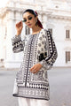 Make a bold statement with Monochrome Magic, an effortlessly chic 2-piece stitched ensemble that embodies elegance and contemporary style. The kurta features a striking black and white contrast, adorned with intricate floral prints and geometric detailing, making it a timeless choice for both casual and semi-formal occasions.