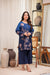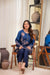 A rich sapphire blue crepe ensemble adorned with soft golden floral embroidery, exuding sophistication and charm. This effortlessly stylish 2-piece set is perfect for both day and evening wear.