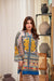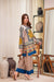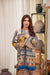 Exude elegance in this 2-piece crepe ensemble featuring baroque-inspired patterns in golden yellow and deep blue. With delicate floral details and geometric mosaic print trousers, it’s perfect for both daytime gatherings and evening soirees