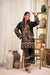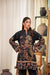 A luxurious black crepe two-piece adorned with intricate gold and floral patterns, evoking timeless charm. Effortlessly chic and breathable, perfect for a sophisticated statement look.