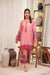 This pastel pink crepe two-piece radiates elegance with delicate floral prints and intricate tassel details. Light, airy, and graceful, it's the perfect fusion of comfort and charm.